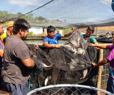 Despesca parcial em tanques comunitários garante aproximadamente 250 kg de peixes para a alimentação de famílias da aldeia Aty Mirĩ, em Itaipulândia.