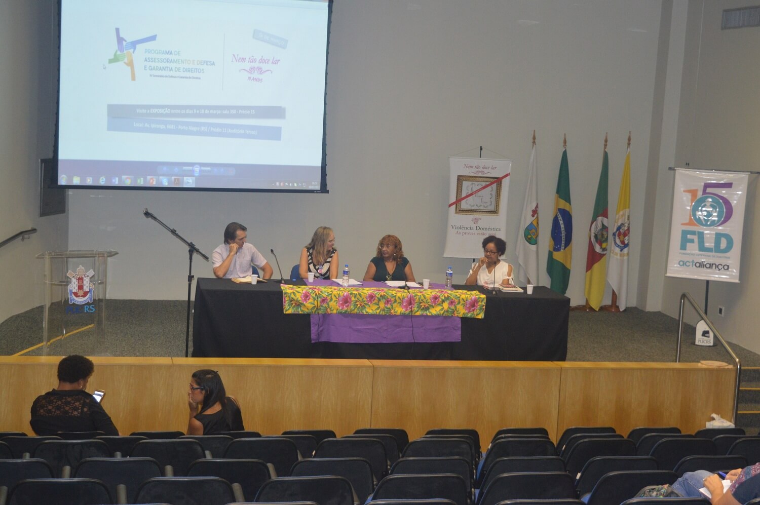 A última mesa do seminário, Iniciativas de superação das violências/novas perspectivas, composta por Marlene Strey, do PPG Psicologia/PUCRS – Escola de Humanidades, e Télia Negrão, do Coletivo Feminino Plural, contou com a mediação de Rogério Oliveira de Aguiar, assessor de projetos na FLD.