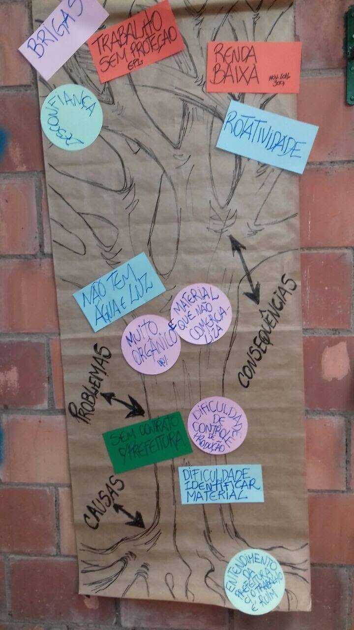 Após a realização das duas oficinas de planejamento foram elaborados planos de gestão, sintetizando as discussões apresentadas por cada cooperada e cooperado. A partir daí, construiu-se um consenso coletivo sobre as dificuldades e suas respectivas soluções, dividindo tarefas para enfrentar e superar os problemas