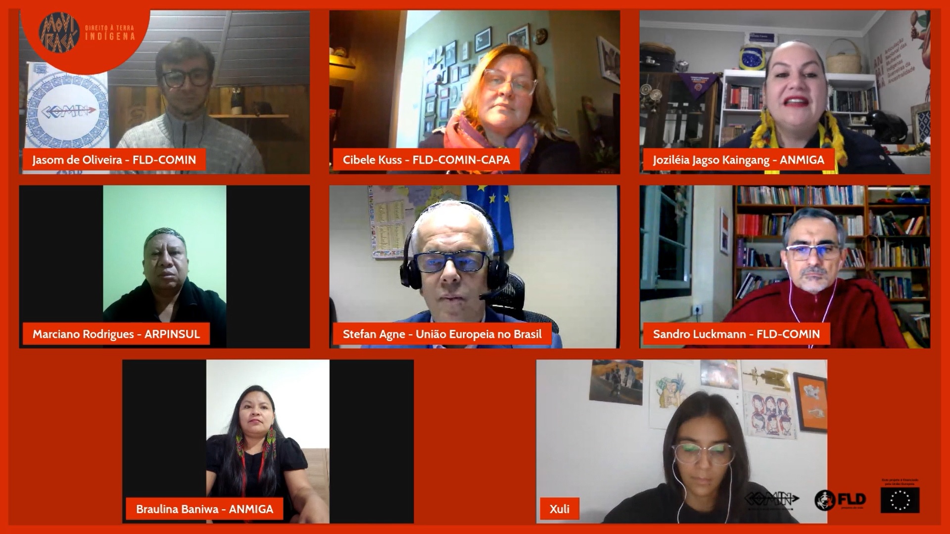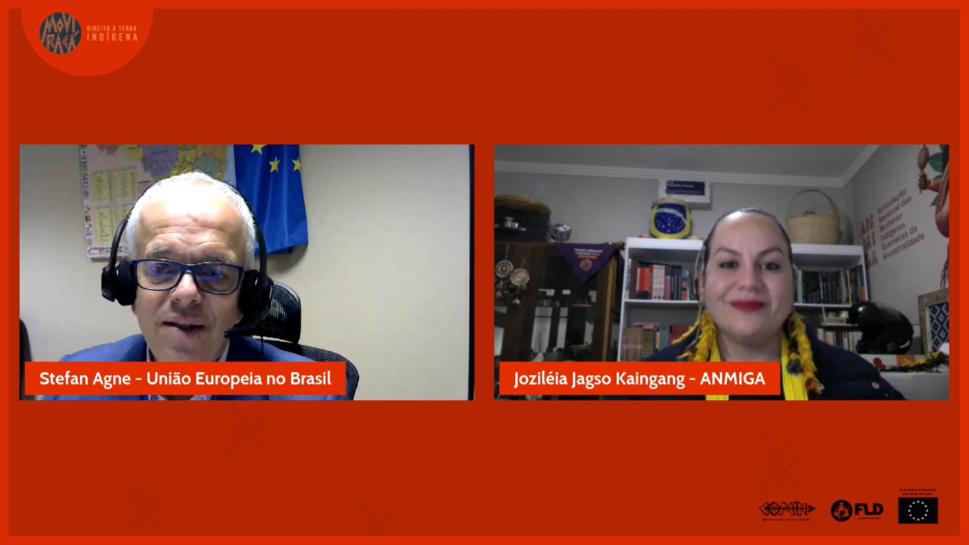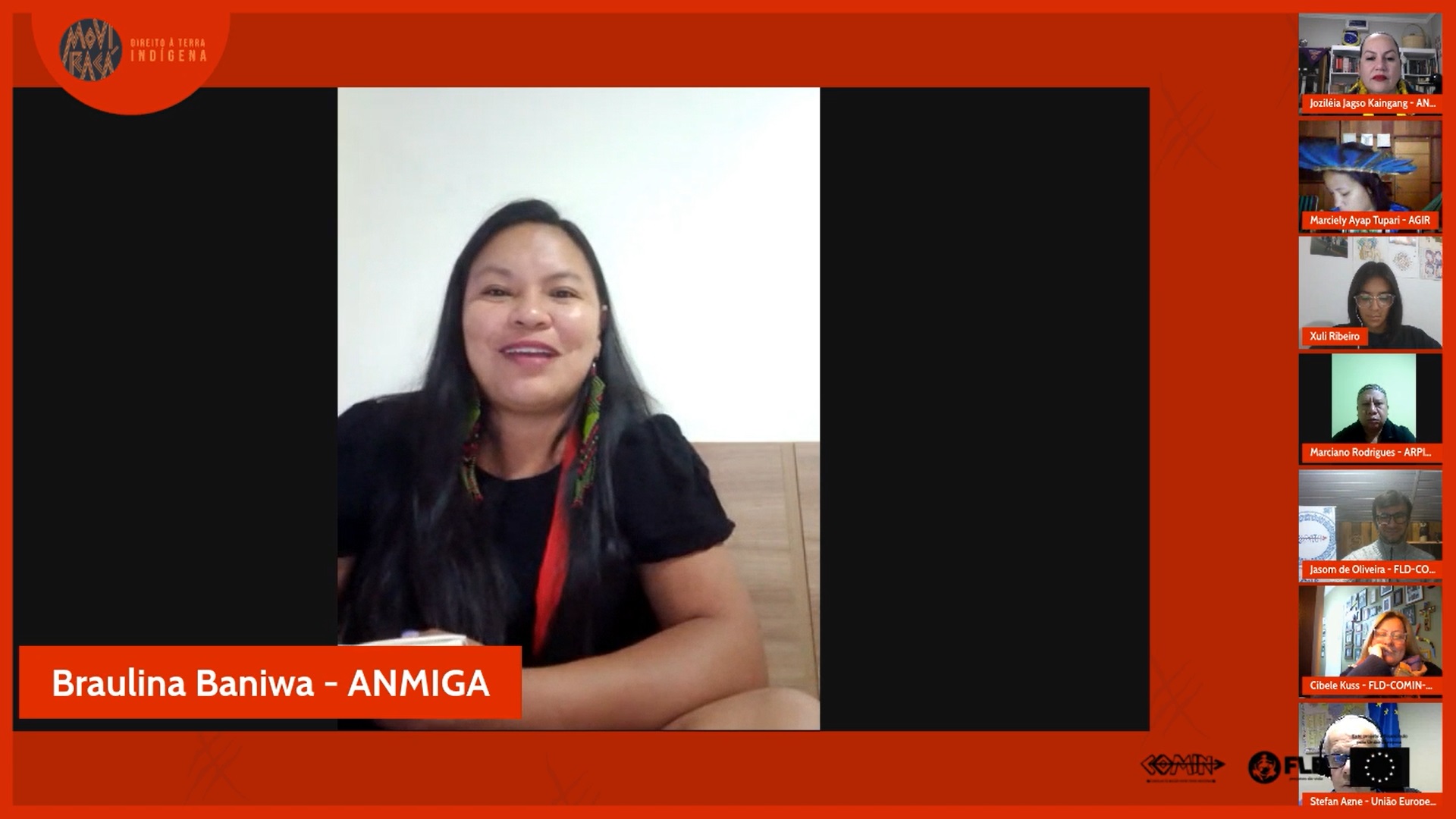 O lançamento foi realizado com participação das lideranças indígenas Braulina Baniwa, da Articulação Nacional das Mulheres Indígenas Guerreiras da Ancestralidade (ANMIGA), Marciely Ayap Tupari, da Associação das Guerreiras Indígenas de Rondônia (AGIR), e Marciano Rodrigues, da Articulação dos Povos Indígenas da Região Sul (Arpinsul), que apresentaram ao público suas organizações e falaram sobre a presença do movimento indígena nas regiões Sul e Norte do país e a parceria com o projeto de FLD-COMIN. Também esteve presente o representante da Cooperação da Delegação da UE no Brasil, Stefan Agne. A mediação foi feita pela co-fundadora da ANMIGA, Joziléia Jagso Kaingang.