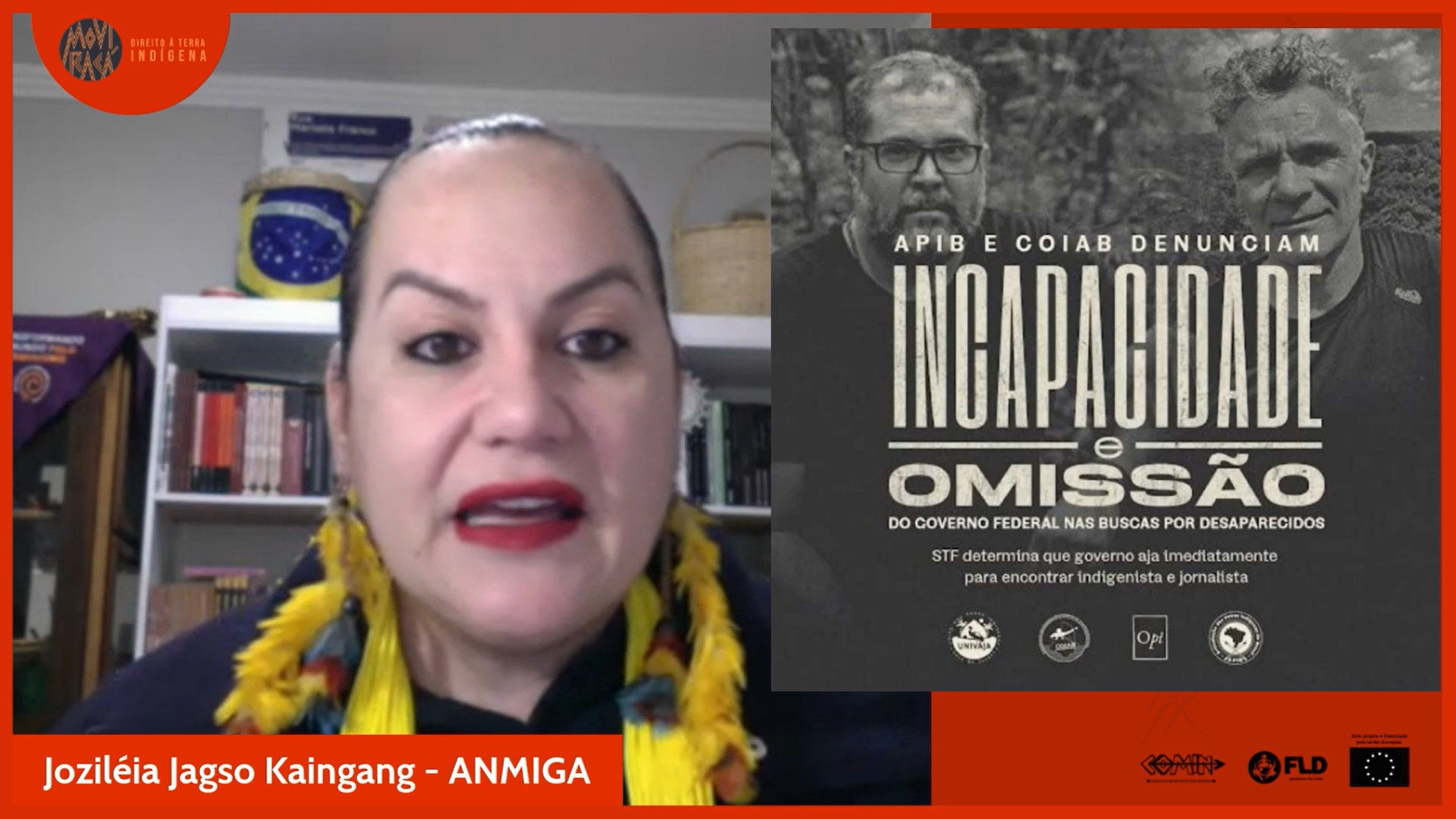Logo no começo da transmissão, Joziléia prestou solidariedade ao ocorrido com o indigenista Bruno Pereira e o jornalista Dom Phillips, no Vale do Javari, somando-se às famílias e às organizações indígenas que lutavam ainda nas buscas. Bruno e Dom foram assassinados e seus restos mortais encontrados na quarta-feira (15), após a confissão de um dos envolvidos. A importância do trabalho de ambos foi ressaltada em outros momentos do lançamento, bem como a denúncia pela maior proteção dos povos indígenas no país e suas aliadas e seus aliados.