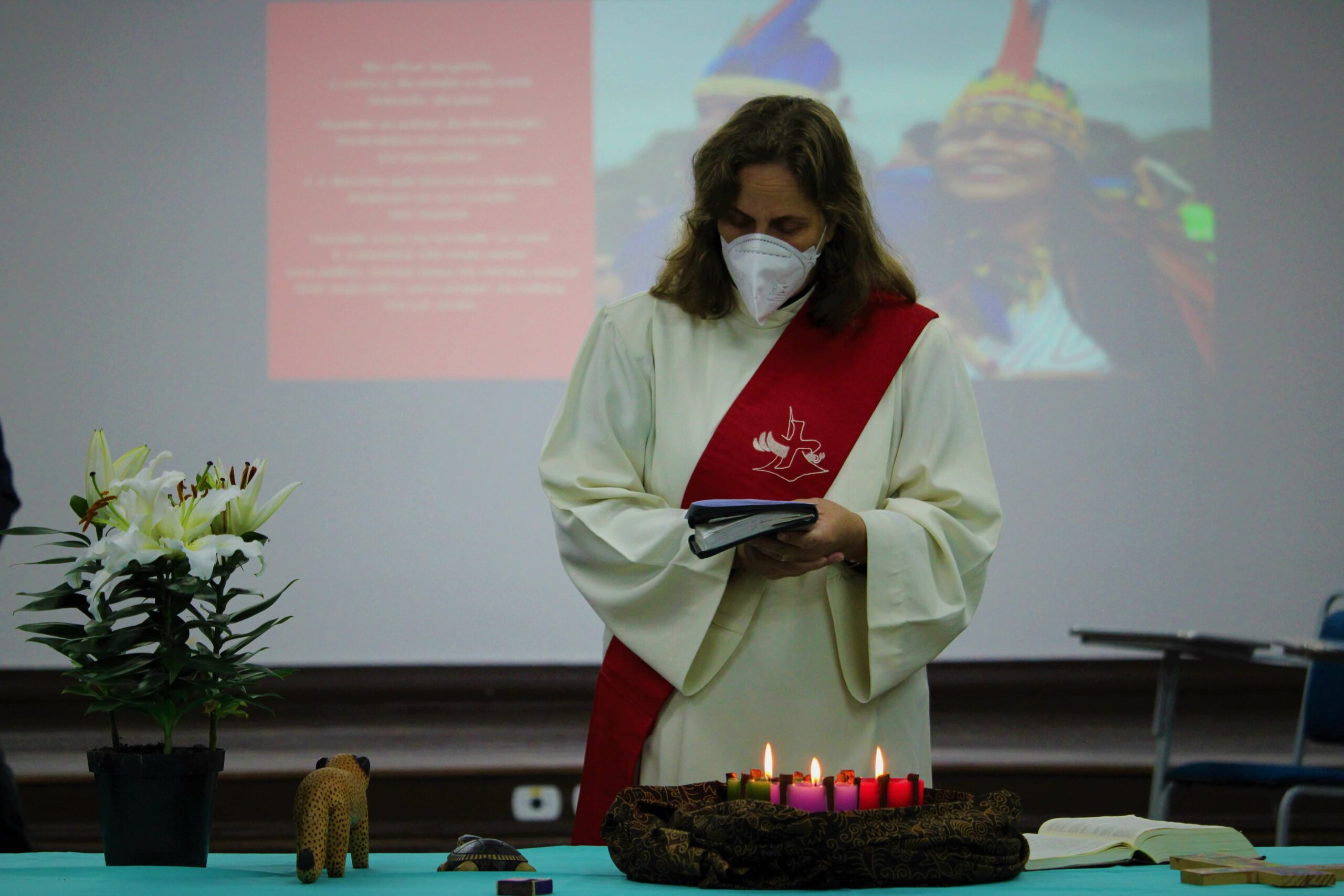 A celebração pelos 40 anos do Conselho de Missão entre Povos Indígenas foi conduzida pela Pa Cibele Kuss, secretária executiva da FLD-COMIN-CAPA, juntamente com P. Cristov Kayser, presidente do conselho do COMIN, Diác. Irléci Klitzke Thomas, do Sínodo Espírito Santo a Belém, e P Sandro Luckmann, coordenação geral do COMIN.