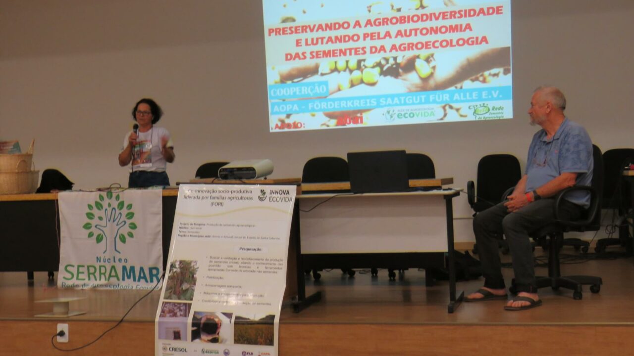 O Projeto Innova Ecovida, que tem como objetivo fortalecer os processos de inovação protagonizadas pelas famílias agricultoras, esteve inserido nesta atividade, mobilizando suas unidades de referência, que tem conduzido uma série de práticas de pesquisa, envolvendo as temáticas de sementes e mudas de hortaliças, SPDH e Bioinsumos, para compartilhar o caminhar do processo de construção social dos conhecimentos e de seus principais acúmulos que estão sendo gerados.