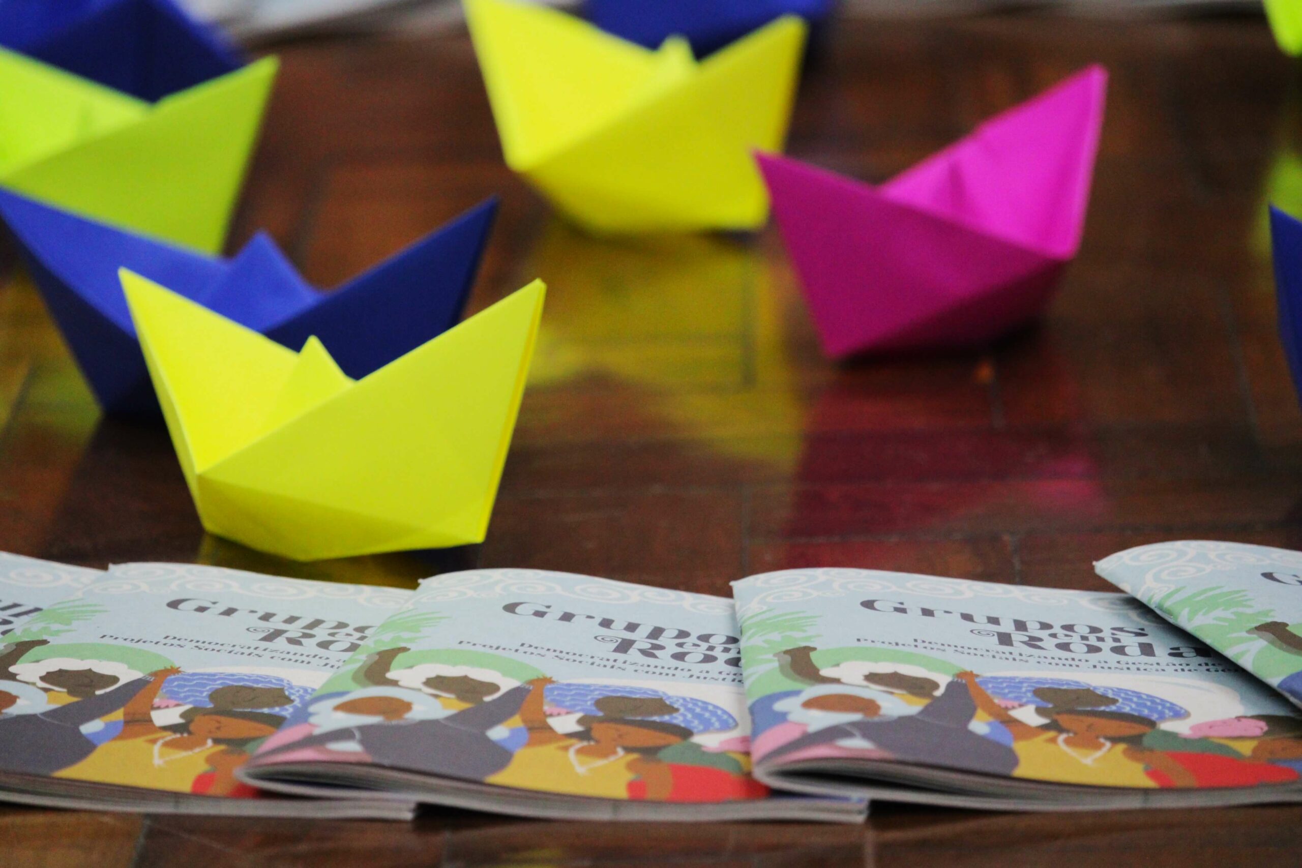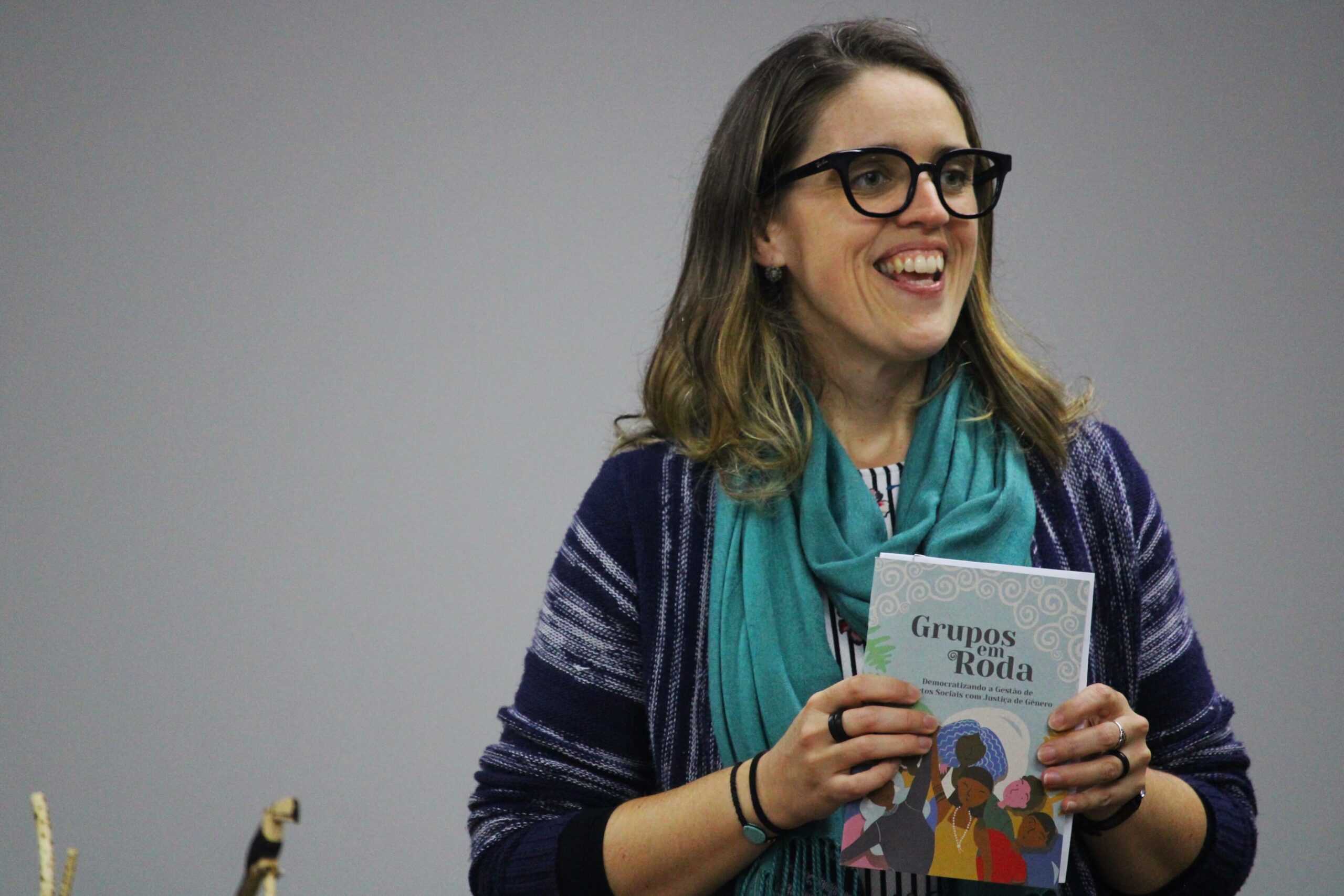 No primeiro dia da Assembleia, as pessoas presentes conheceram o caderno “Grupos em Roda: Democratizando a Gestão de Projetos Sociais com Justiça de Gênero”, feito ao longo do acompanhamento aos grupos e projetos apoiados por meio do Programa de Pequenos Projetos da FLD.