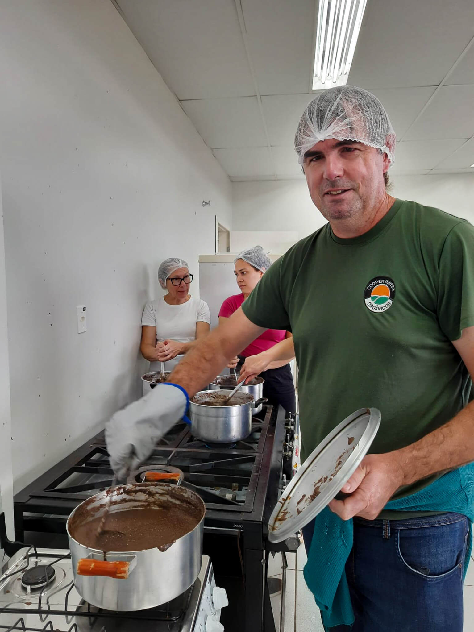 Famílias agricultoras das cooperativas Coopervereda (Cooperativa dos Produtores Orgânicos e Agroecológicos do Sudoeste do Paraná) e Coopafi (Cooperativa Central da Agricultura Familiar Integrada do Paraná) participaram de oficina de confeição de doces sem açúcar, no dia 19 de abril, na Unioeste (Universidade Estadual do Oeste do Paraná), em Francisco Beltrão.